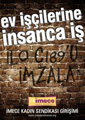 İmece Ev İşçileri Sendikası olarak ev işçilerinin hakları için mücadele yürütmekteyiz. Bugün Türkiye'de yaklaşık bir milyon ev işçisinin olduğu tahmin edilmektedir. Buna karşın ev işçileri şimdiye dek neredeyse yok sayılmıştır. Hâlihazırda ev hizmetlerinde çalışanların tamamına yakını kayıtsız, güvencesiz çalışmaktadır. 4857 sayılı İş Kanunu ev hizmetlerinde çalışanları kapsam dışında bırakarak ev işçilerini işçi haklarından yoksun bırakmaktadır. Buna ek olarak uygulamadaki zorluklar nedeniyle 5510 sayılı Sosyal Sigorta Yasası da ev işçileri için pratiğe geçirilememektedir. Bunun sonucunda sigortalanma işlemleri fiilen uygulanamaz olduğu için ev işçileri sigortasız çalışmaya mahkum edilmektedir. Ev işçilerinin yaşadığı temel sorun alanlarından bir diğerini de iş sağlığı ve güvenliği konusu oluşturmaktadır. 6331 sayılı İş Sağlığı ve Güvenliği Yasası'nda da ev hizmetleri kapsam dışında tutulmuştur. Ev işçileri camdan düşerek iş cinayetlerinde yaşamını yitirmekte, menüsküs, fıtık, lif kopması, cilt hastalıkları gibi meslek hastalıklarına yakalanmakta, ağır çalışma ve kötü barınma koşullarında, taciz, mobbing, gibi pek çok riskle karşı karşıya kalmaktadırlar. Ancak ev hizmetlerinde çalışanların karşı karşıya olduğu bütün bu riskler devlet tarafından göz ardı edilmektedir.